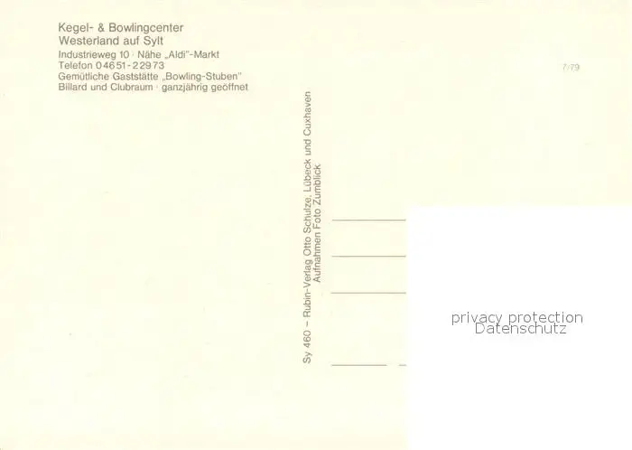 Westerland_Sylt Kegel und Bowlingcenter Kegelbahn Scherenbahn Bowlingbahn Bowlingstuben Westerland_Sylt postalisch nicht gelaufen nach 1965 Erhaltung siehe scans [WerneD78] WernPID7
