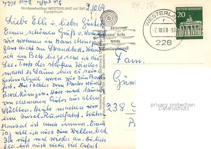 Westerland_Sylt Kurzentrum Nordseeheilbad Fliegeraufnahme Westerland_Sylt postalisch gelaufen 1969 Erhaltung siehe scans [FriedD77] Frierer
