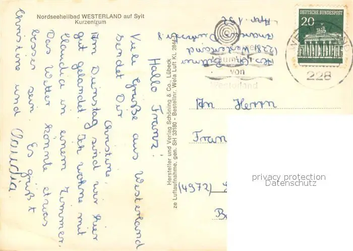 Westerland_Sylt Kurzentrum Strand Fliegeraufnahme Westerland_Sylt postalisch gelaufen 1972 Erhaltung siehe scans [FriedD77] Frierer