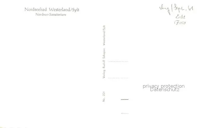 Westerland_Sylt Nordseebad Sanatorium Westerland_Sylt postalisch nicht gelaufen 1961 Erhaltung siehe scans [WerneD78] WernPID7