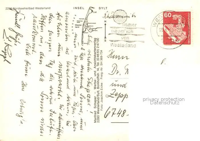 Westerland_Sylt Nordseeheilbad Fliegeraufnahme Westerland_Sylt postalisch gelaufen 1985 Erhaltung siehe scans [FriedD77] Frierer