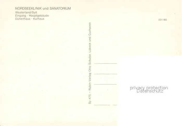 Westerland_Sylt Nordseeklinik und Sanatorium Duenenhaus Kurhaus Westerland_Sylt postalisch nicht gelaufen 1980 Erhaltung siehe scans [FriedD77] Frierer