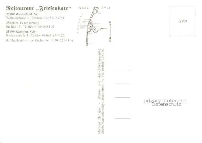 Westerland_Sylt Restaurant Friesenkate mit Kampen Sylt und St Peter Ording Terrasse Westerland_Sylt postalisch nicht gelaufen nach 1965 Erhaltung siehe scans [WerneD78] WernPID7