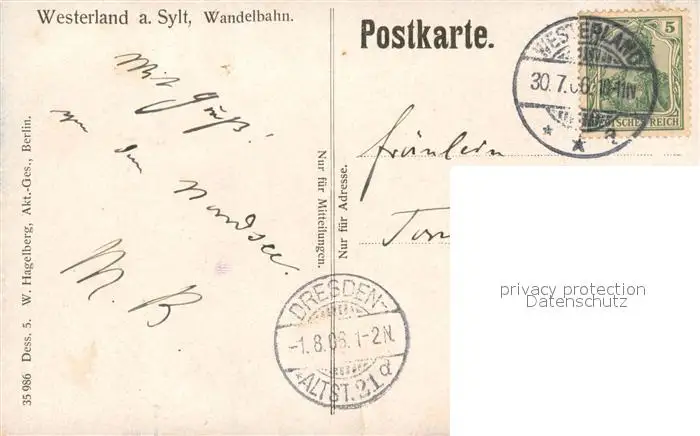 Westerland_Sylt Wandelbahn Westerland_Sylt postalisch gelaufen 1906 Erhaltung siehe scans [WerneD78] WernPID7
