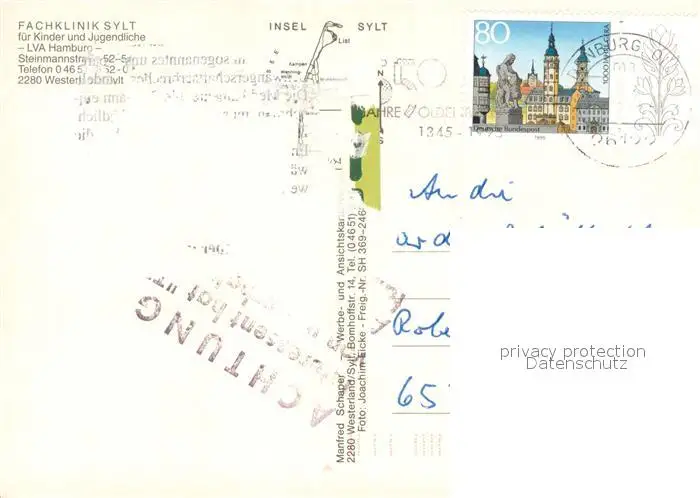 Westerland_Sylt mit Fachklinik der LVA Hamburg Fliegeraufnahme Westerland_Sylt postalisch gelaufen 1995 Erhaltung siehe scans [FriedD77] Frierer