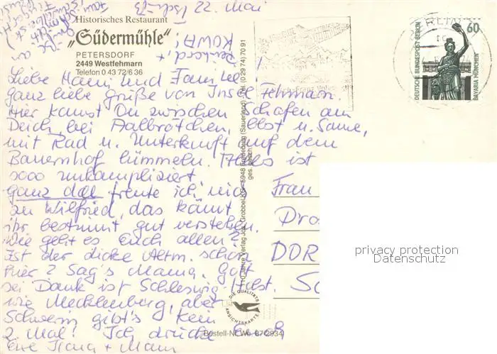 Westfehmarn Restaurant Suedermuehle Westfehmarn postalisch gelaufen 1974 Erhaltung siehe scans [LiesaD40] LiesID40