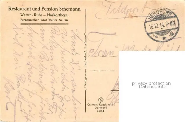 Wetter_Ruhr Partie an der Ruhr Wetter Ruhr postalisch gelaufen 1914 Feldpost Erhaltung siehe scans [FriedD77] Feldpost Frierer