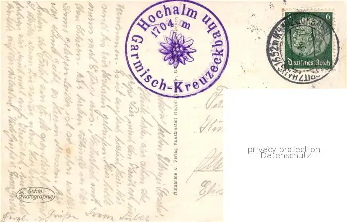 Wetterstein Die Hochalm mit Wettersteinwand Wetterstein postalisch gelaufen 1939 Erhaltung siehe scans [WerneD78] WernPID7
