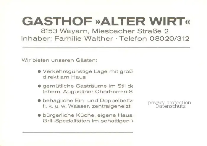 Weyarn Gasthof Alter Wirt Aussenansicht Weyarn postalisch nicht gelaufen nach 1965 Werbekarte (keine Postkarte) Erhaltung siehe scans [LiesaD40] Werbekarte (keine Postkarte) LiesID40
