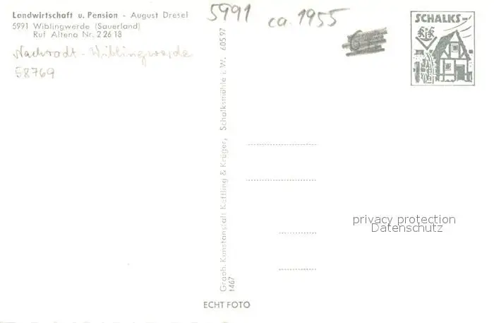 Wiblingwerde Landwirtschaft und Pension August Dresel Panorama Gaestezimmer Wiblingwerde postalisch nicht gelaufen 1955 Erhaltung siehe scans [WerneD78] WernPID7