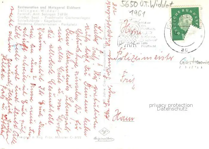 Widdert Fliegeraufnahme Restaurant und Metzgerei Eickhorn Widdert postalisch gelaufen 1961 Erhaltung siehe scans [LiesaD40] LiesID40
