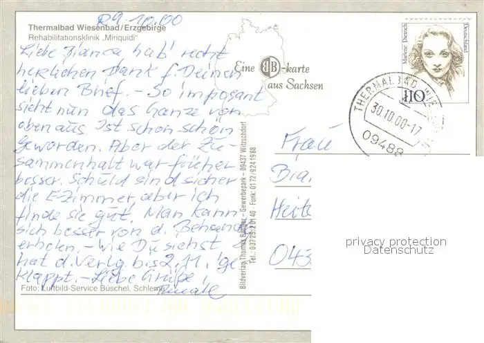 Wiesenbad Thermalbad Rehaklinik Minquidi Fliegeraufnahme Wiesenbad postalisch gelaufen 2000 Erhaltung siehe scans [WerneD78] WernPID7