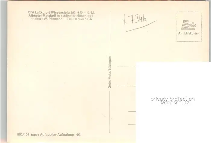 Wiesensteig Albhotel Malakoff Wiesensteig postalisch nicht gelaufen nach 1965 Erhaltung siehe scans [PaolaD17] PaolPID1