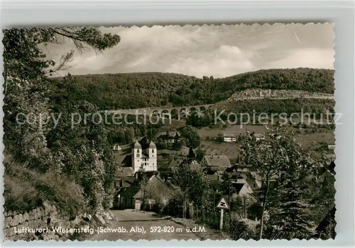 Wiesensteig Kirche BAB Viadukt Albaufstieg Wiesensteig postalisch nicht gelaufen 1964 Erhaltung siehe scans [KathaD81] Kathoren