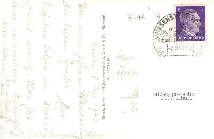Wiesensteig Wielandstein Wiesensteig postalisch gelaufen 1942 Erhaltung siehe scans [WerneD78] WernPID7