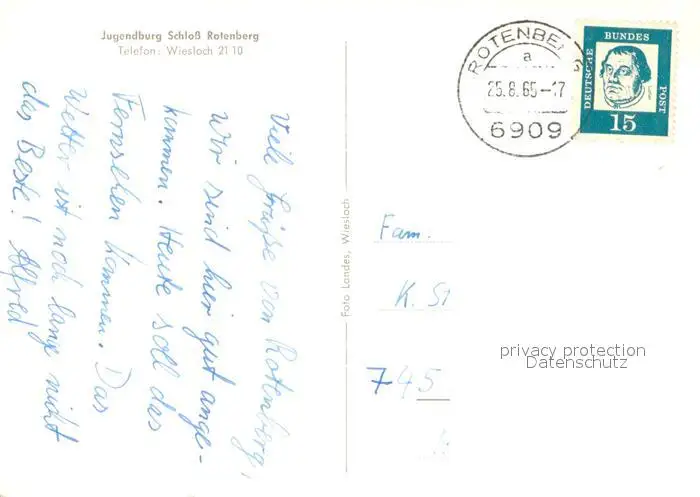 Wiesloch Jugendburg Schloss Rotenberg Wiesloch postalisch gelaufen 1965 Erhaltung siehe scans [WerneD78] WernPID7