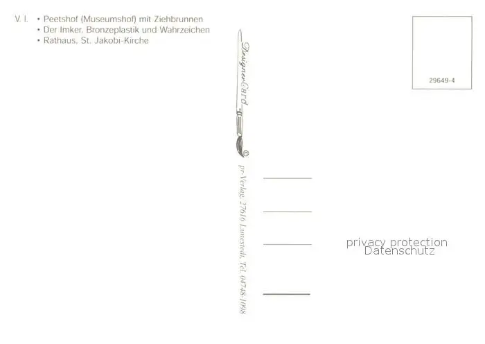 Wietzendorf Peetshof mit Ziehbrunnen Plastik der Imker Rathaus St Jakobi Kirche Wietzendorf postalisch nicht gelaufen nach 1965 Erhaltung siehe scans [WerneD78] WernPID7