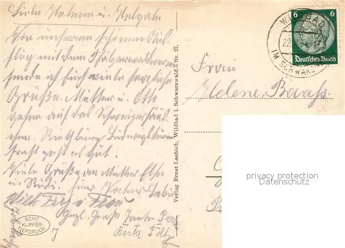 Wildbad_Schwarzwald Bei der Trinkhalle Wildbad_Schwarzwald postalisch gelaufen 1934 Erhaltung siehe scans [WerneD78] WernPID7