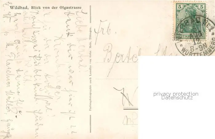 Wildbad_Schwarzwald Blick von der Olgastrasse Wildbad_Schwarzwald postalisch gelaufen 1912 Erhaltung siehe scans [FriedD77] Frierer