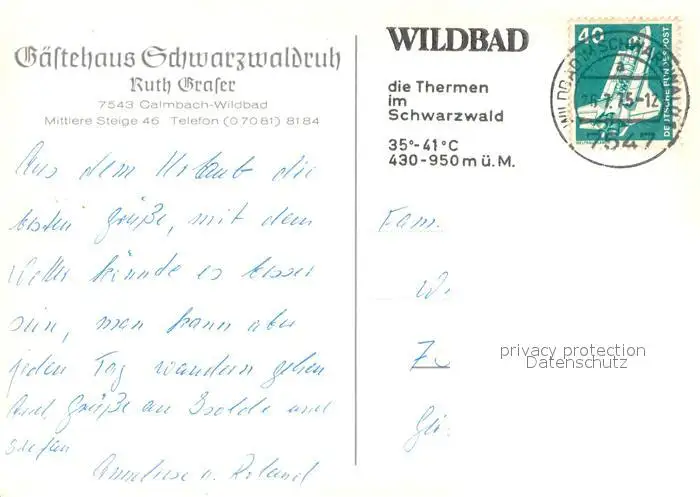 Wildbad_Schwarzwald Gaestehaus Schwarzwaldruh Wildbad_Schwarzwald postalisch gelaufen 1975 Erhaltung siehe scans [WerneD78] WernPID7