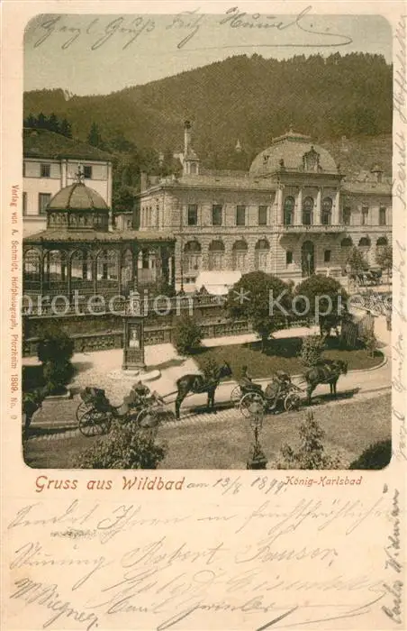 Wildbad_Schwarzwald K?nig-Karlsbad Pferdekutschen Wildbad_Schwarzwald postalisch gelaufen 1899 Erhaltung siehe scans [LiesaD40] LiesID40