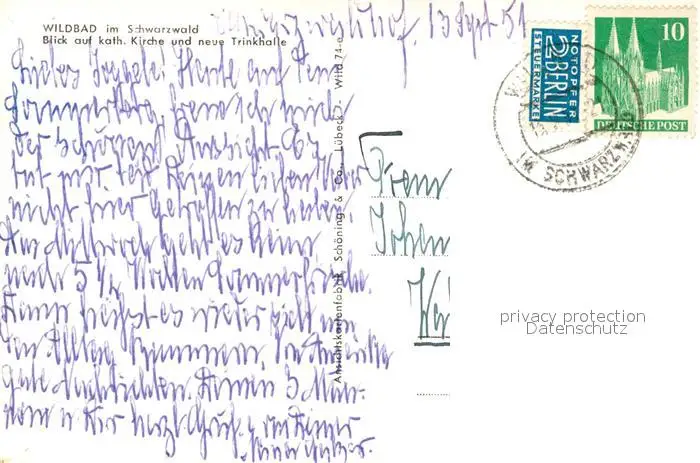 Wildbad_Schwarzwald Kath Kirche und neue Trinkhalle Wildbad_Schwarzwald postalisch gelaufen 1921-1965 Erhaltung siehe scans [WerneD78] WernPID7
