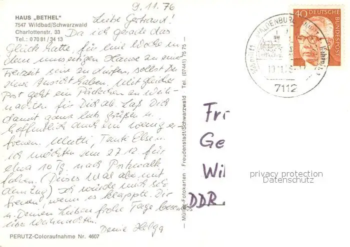 Wildbad_Schwarzwald Kurheim Bethel mit Gaestehaus Gaststube Hallenbad Wildbad_Schwarzwald postalisch gelaufen 1976 Erhaltung siehe scans [WerneD78] WernPID7