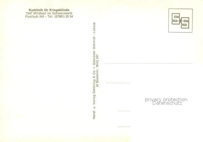 Wildbad_Schwarzwald Kurklinik fuer Kriegsblinde Wildbad_Schwarzwald postalisch nicht gelaufen nach 1965 Erhaltung siehe scans [WerneD78] WernPID7