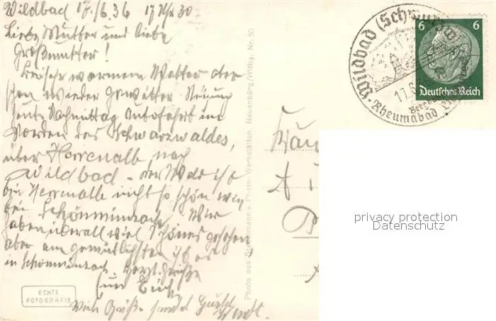 Wildbad_Schwarzwald Kurplatz Wildbad_Schwarzwald postalisch gelaufen 1936 Erhaltung siehe scans [WerneD78] WernPID7