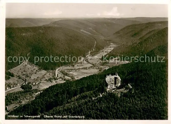 AK / Ansichtskarte Wildbad_Schwarzwald Oberes Enztal mit Sommerberg Fliegeraufnahme Wildbad_Schwarzwald