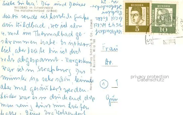 Wildbad_Schwarzwald Thermalschwimmbad Wildbad_Schwarzwald postalisch gelaufen 1962 Erhaltung siehe scans [FriedD77] Frierer