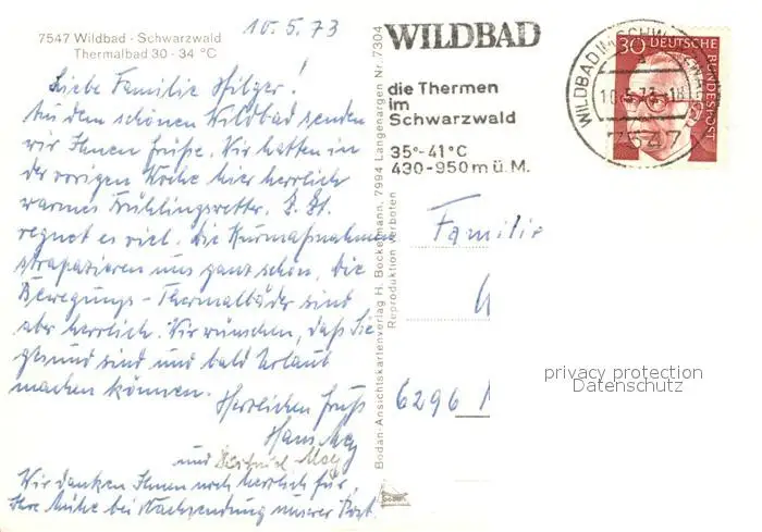 Wildbad_Schwarzwald Wildbad_Schwarzwald postalisch gelaufen 1973 Erhaltung siehe scans [NatalD47] NataID47
