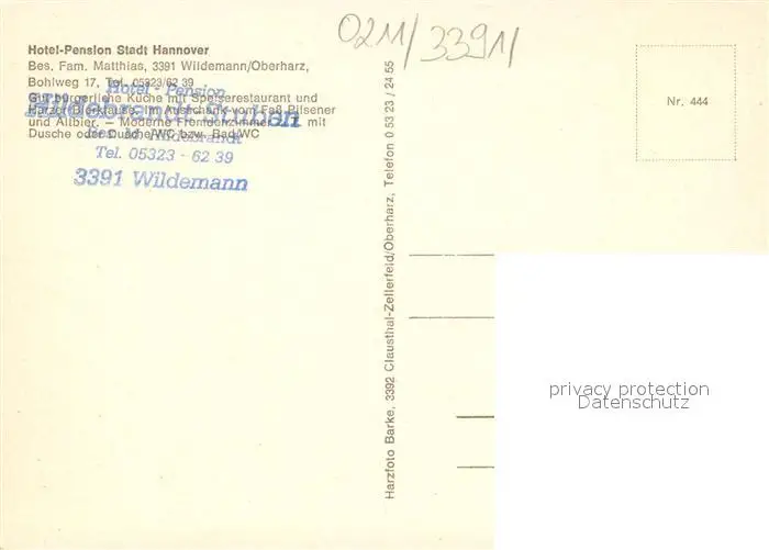 Wildemann Hotel Pension Stadt Hannover Gastraeume Wildemann postalisch nicht gelaufen nach 1965 Erhaltung siehe scans [WerneD78] WernPID7