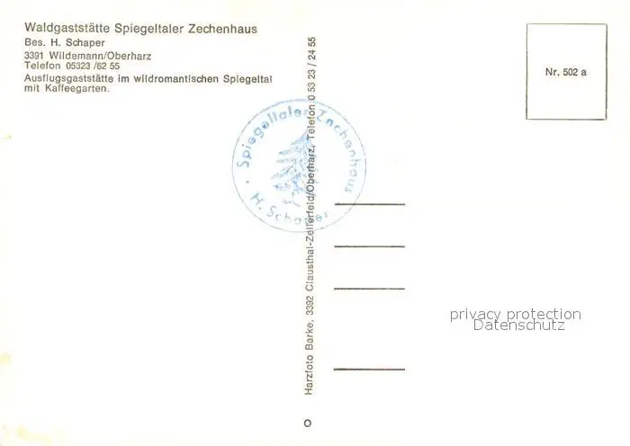Wildemann Waldgaststaette Spiegeltaler Zechenhaus Ausflugsgaststaette Wildemann postalisch nicht gelaufen nach 1965 Erhaltung siehe scans [FriedD77] Frierer