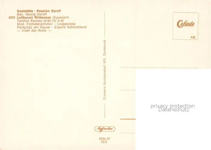 Wildensee_Unterfranken Gaststaette Pension Dyroff Wildensee Unterfranken postalisch nicht gelaufen nach 1965 Erhaltung siehe scans [FriedD77] Frierer