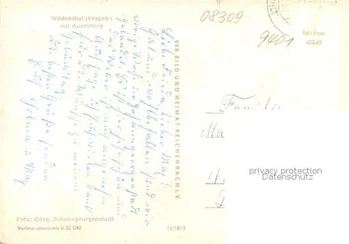 Wildenthal_Eibenstock Panorama Blick zum Auersberg Wildenthal_Eibenstock postalisch gelaufen 1962 Erhaltung siehe scans [FriedD77] Frierer