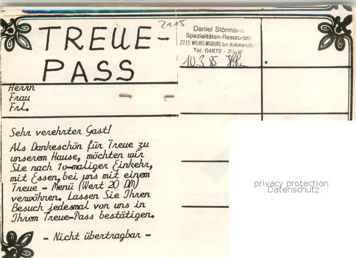 Wilhelmsburg_Schleswig-Holstein Spezialitaeten Restaurant Wilhelmsburg Gaststueb Verkaufsraum postalisch gelaufen 1985 Erhaltung siehe scans [WerneD78] WernPID7