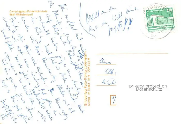 Wilhelmsdorf_Poessneck Campingplatz Portenschmiede Wilhelmsdorf Poessneck postalisch gelaufen 1988 Erhaltung siehe scans [FriedD77] Frierer