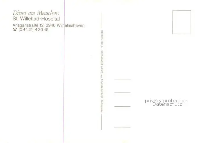 Wilhelmshaven St. Willehad Hospital Musikchor Wilhelmshaven postalisch nicht gelaufen nach 1965 Erhaltung siehe scans [FriedD77] Frierer