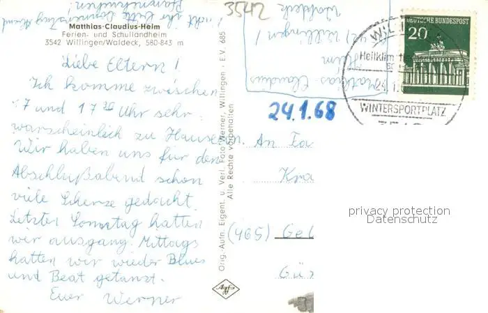 Willingen_Sauerland Matthias Claudius Heim Willingen_Sauerland postalisch gelaufen 1968 Erhaltung siehe scans [WerneD78] WernPID7