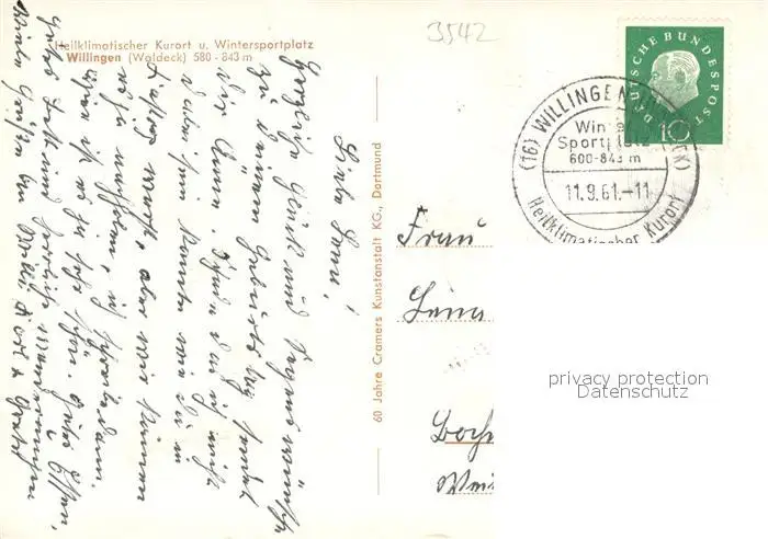 Willingen_Sauerland Ortsansicht Willingen_Sauerland postalisch gelaufen 1961 Erhaltung siehe scans [WerneD78] WernPID7