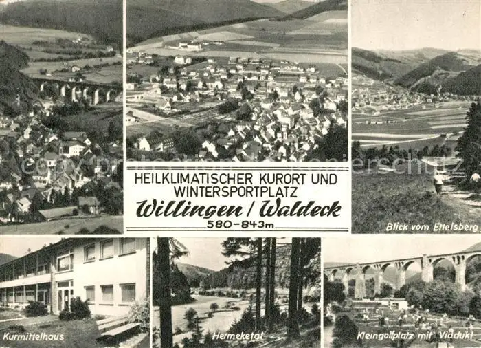 Willingen_Sauerland Panorama Blick vom Ettelsberg Kurmittelhaus Hermeketal Minigolfplatz Viadukt Willingen_Sauerland postalisch gelaufen 1965 Erhaltung siehe scans [WerneD78] WernPID7