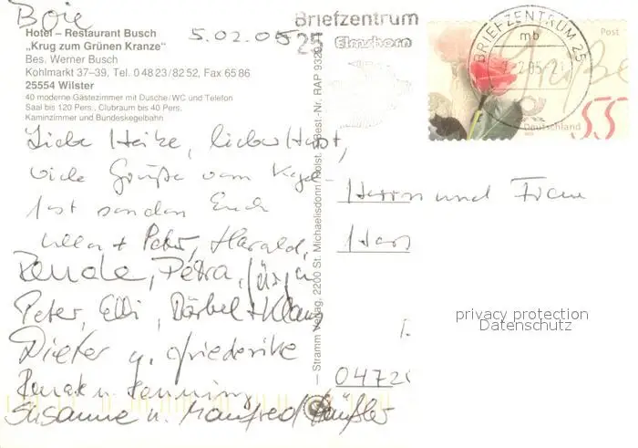 Wilster Hotel Busch Kegelbahnen Bar Gaststube Wilster postalisch gelaufen 2005 Erhaltung siehe scans [WerneD78] WernPID7