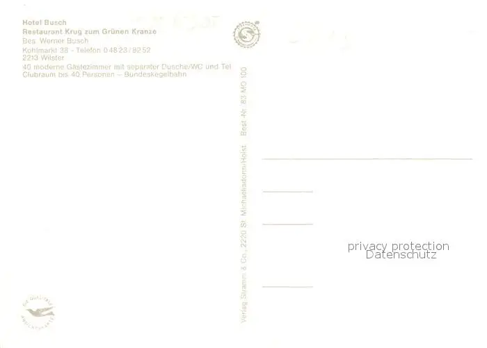 Wilster Kategorie Alte Ansichtskarten Postkarten bx45471 Wilster Hotel Busch Restaurant Krug zum Grueen Kranze Wilster postalisch nicht gelaufen nach 1965 Erhaltung siehe scans [LiesaD40]