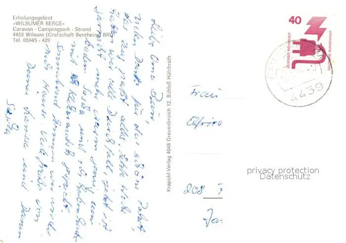 Wilsum Erholungsgebiet Wilsumer Berge Campingpark Wilsum postalisch gelaufen 1977 Erhaltung siehe scans [WerneD78] WernPID7