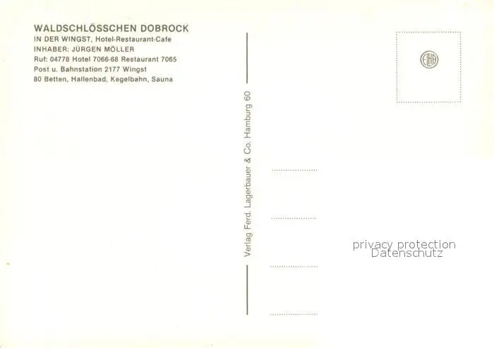 Wingst Waldschloesschen Dobrock Hotel Restaurant Fliegeraufnahme Wingst postalisch nicht gelaufen nach 1965 Erhaltung siehe scans [WerneD78] WernPID7
