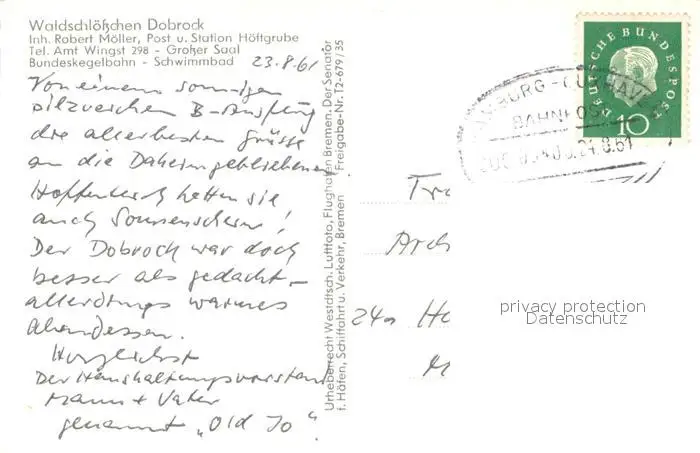 Wingst Waldschloesschen Dobrock Wingst postalisch gelaufen 1961 Erhaltung siehe scans [LiesaD40] LiesID40