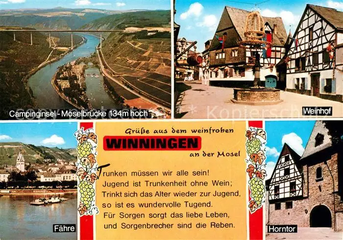 Winningen_Mosel Fliegeraufnahme Campinginsel Moselbruecke Weinhot Horntor Faehre Winningen Mosel postalisch nicht gelaufen nach 1965 Erhaltung siehe scans [LiesaD40] LiesID40