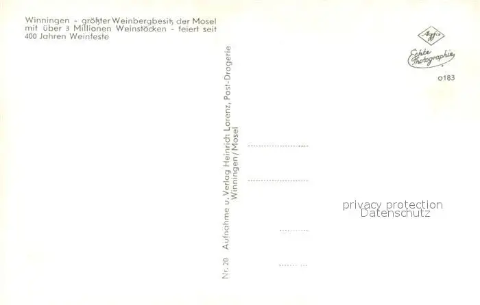 Winningen_Mosel Hamm Brueckstueck Roettgen Weinhexenberg Uhlen Winningen Mosel postalisch nicht gelaufen 1921-1965 Erhaltung siehe scans [WerneD78] WernPID7