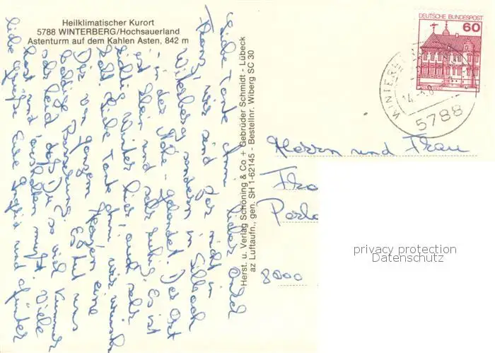 Winterberg_Hochsauerland Astenturm auf dem Kahlen Asten Winterberg_Hochsauerland postalisch gelaufen ca. 1980 Fliegeraufnahme Erhaltung siehe scans [FriedD77] Fliegeraufnahme Frierer
